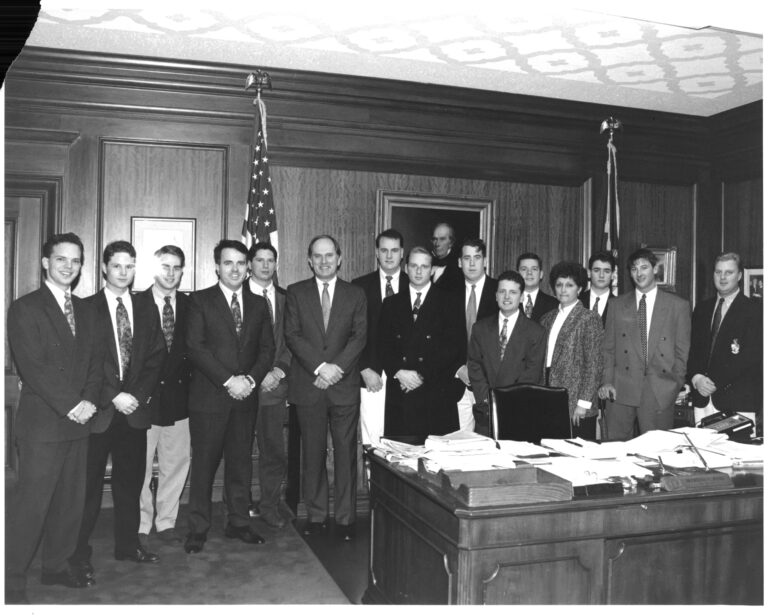 While in those offices, he oversaw the charter and installation of the Epsilon Omicron Chapter at the University of Kentucky in 1990. Three years later, upon receiving the chapter’s first Francis H. Sisson Award, he invited the brothers of Eastern Kentucky’s Delta Xi Chapter to the governor’s office at the capitol to congratulate them.